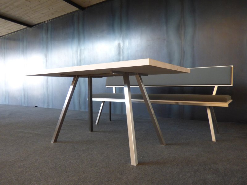 Tische, Bänke und Stühle aus Stahl